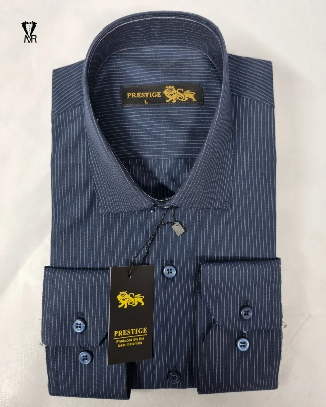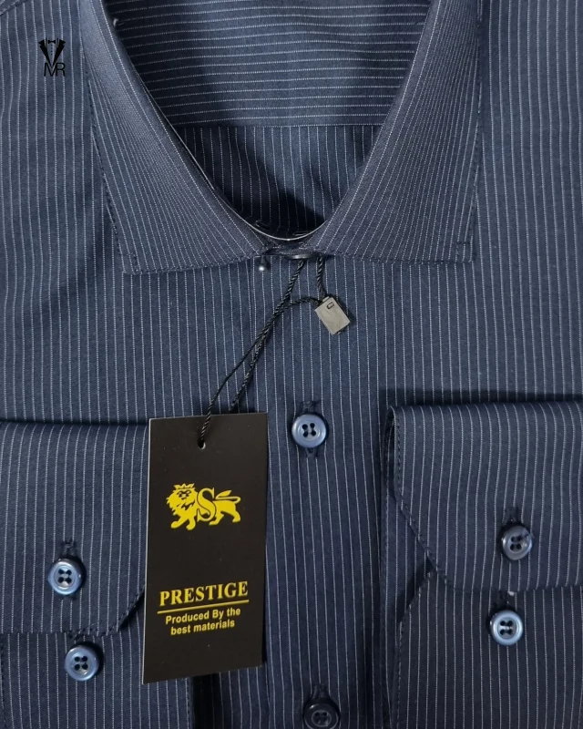 پیراهن حریر خط ریز زمینه سرمه ای با خط آبی