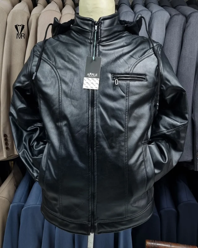 کاپشن چرم مشکی