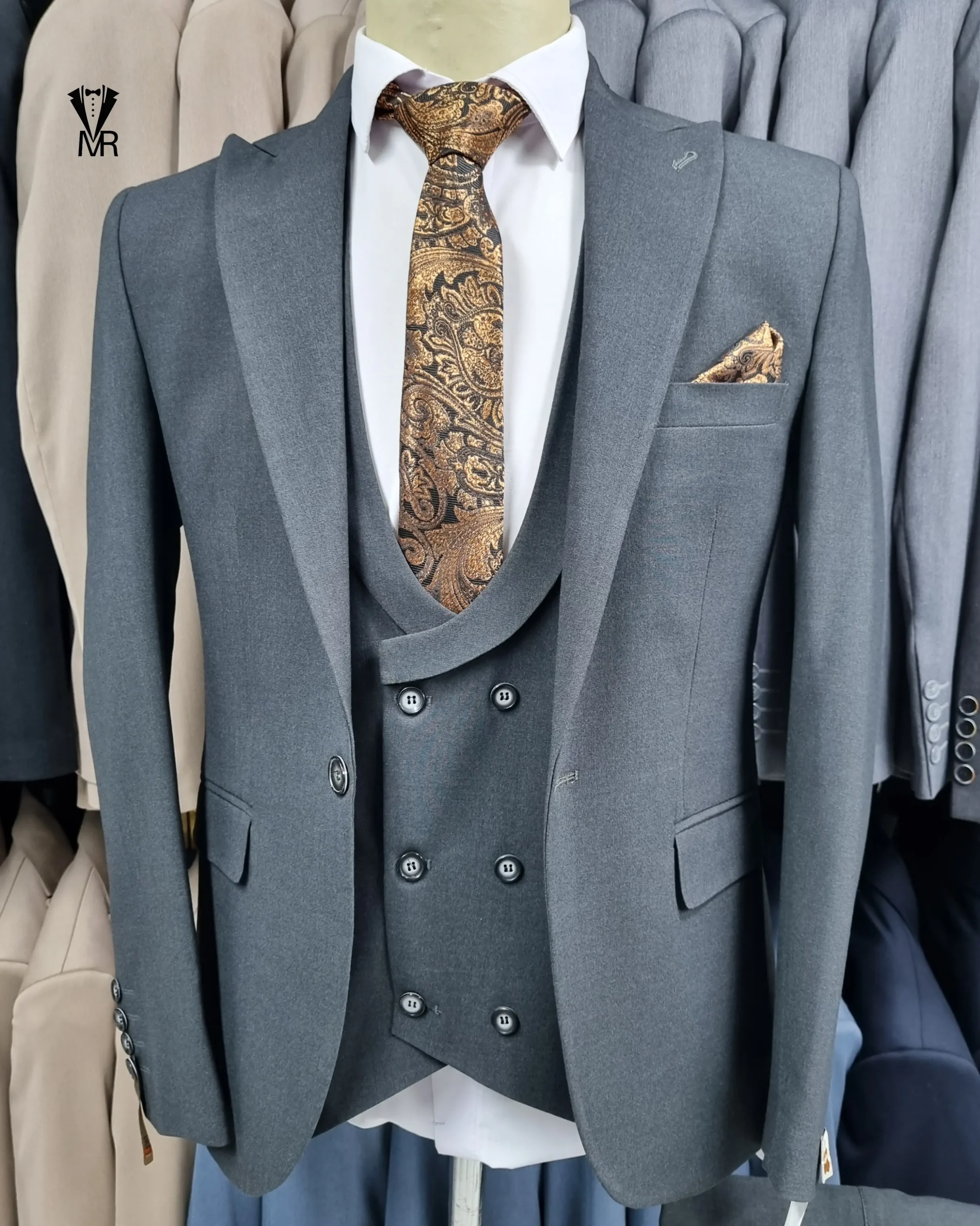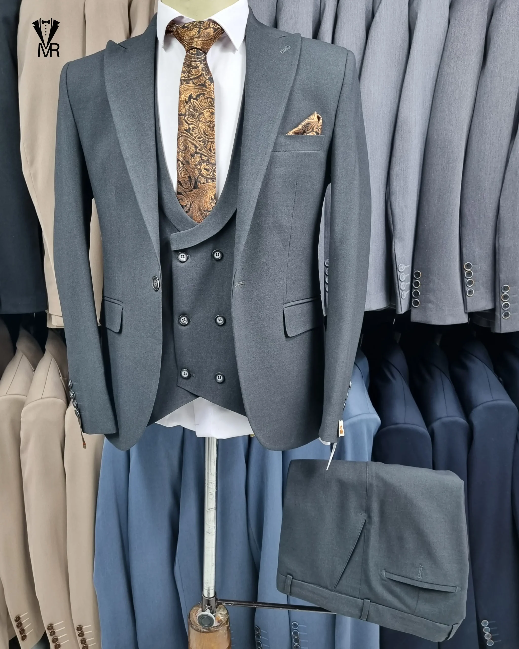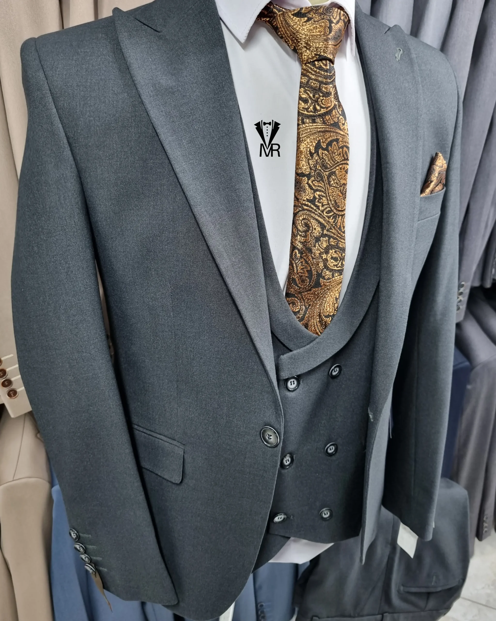 کت و شلوار بزایاق ذغالی یکی از خاصترین و محبوبترین طرحهای مجلسی مردانه است. پارچه بزایاق بهخاطر درخشش ملایم، کیفیت بالا و بافت کمیاب خود شناخته میشود و همین ویژگی باعث میشود این مدل در مراسم رسمی و مهم فوقالعاده چشمگیر دیده شود.