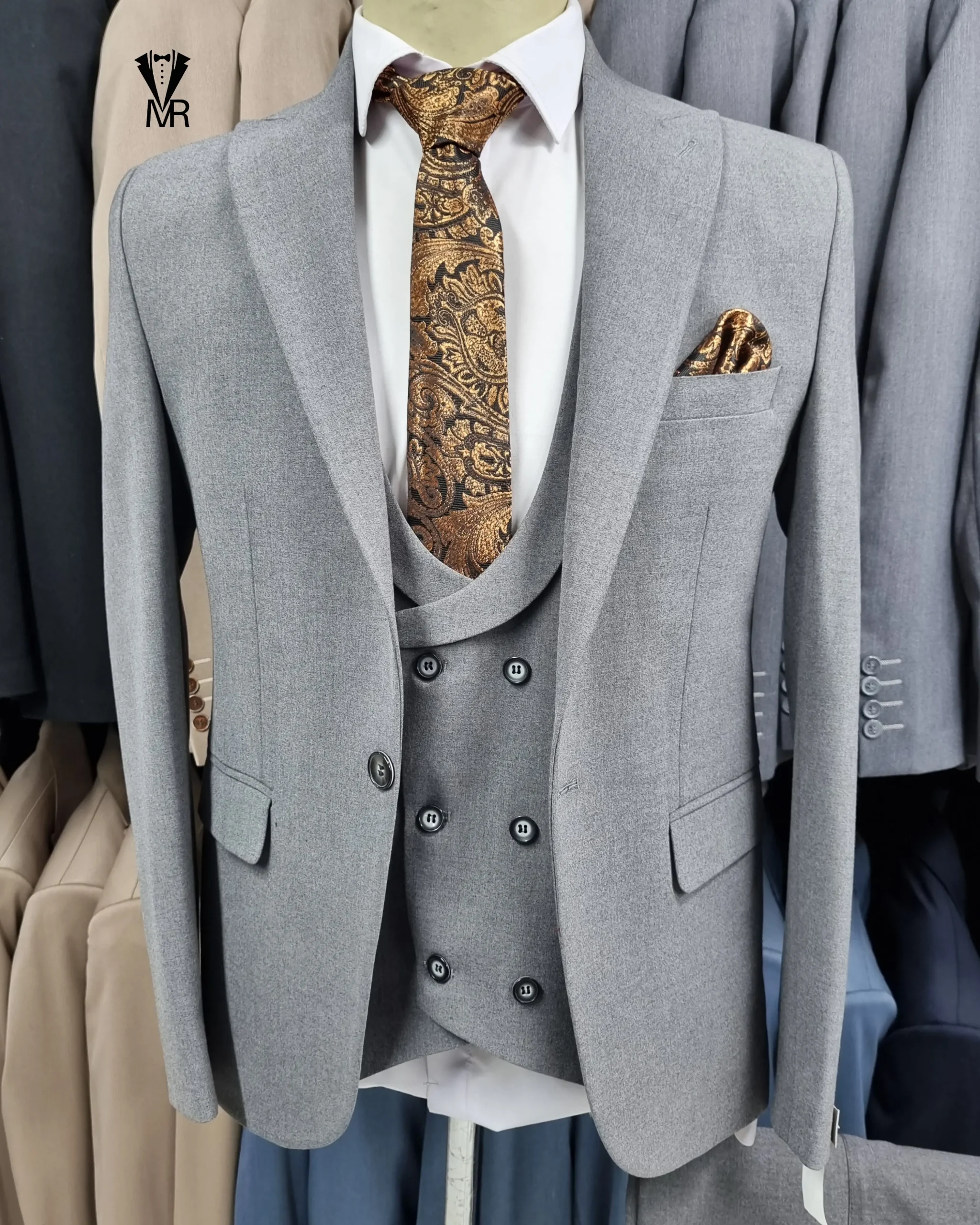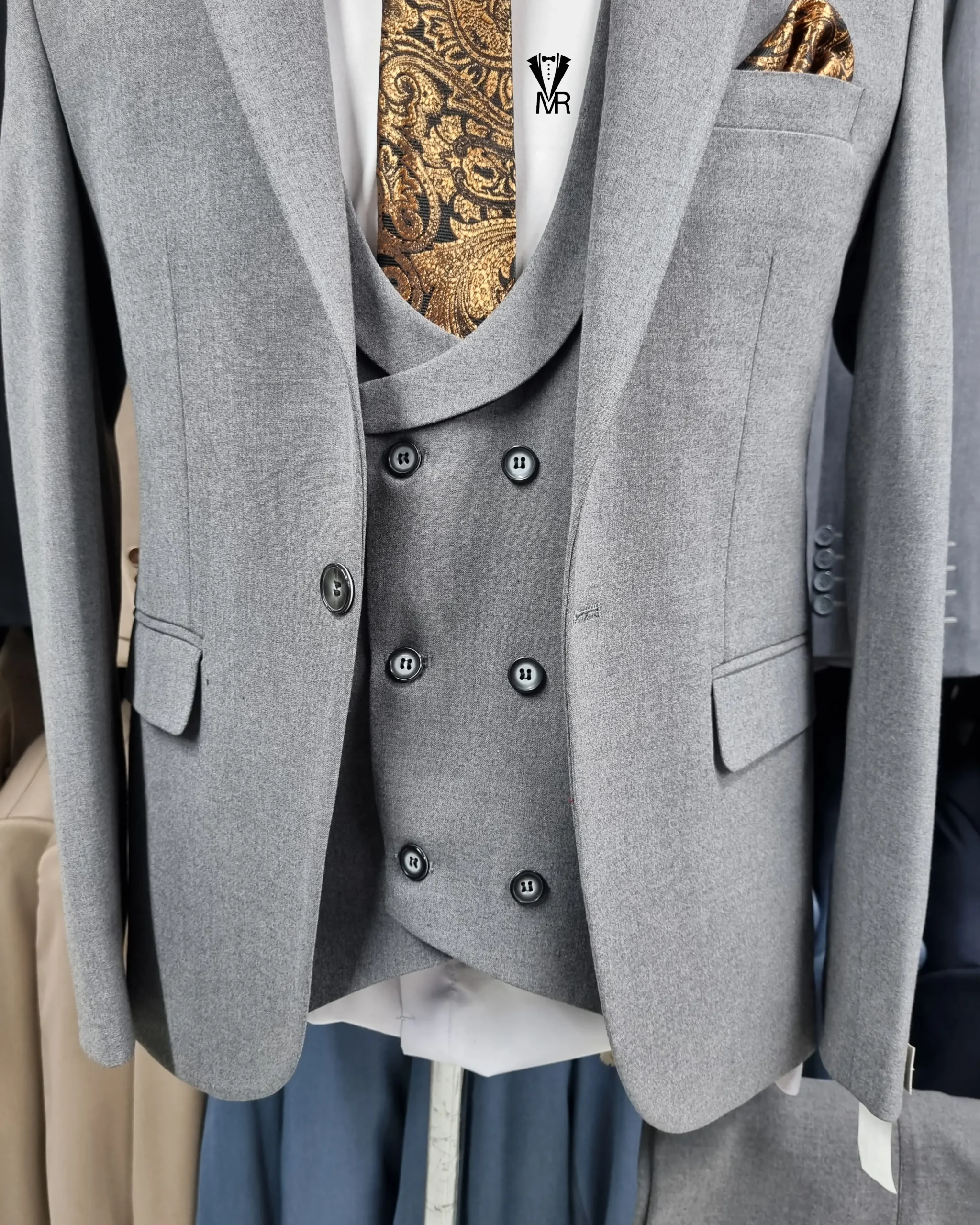 کت و شلوار بزایاق طوسی – ترکیبی از وقار، درخشش و استایل مجلسی