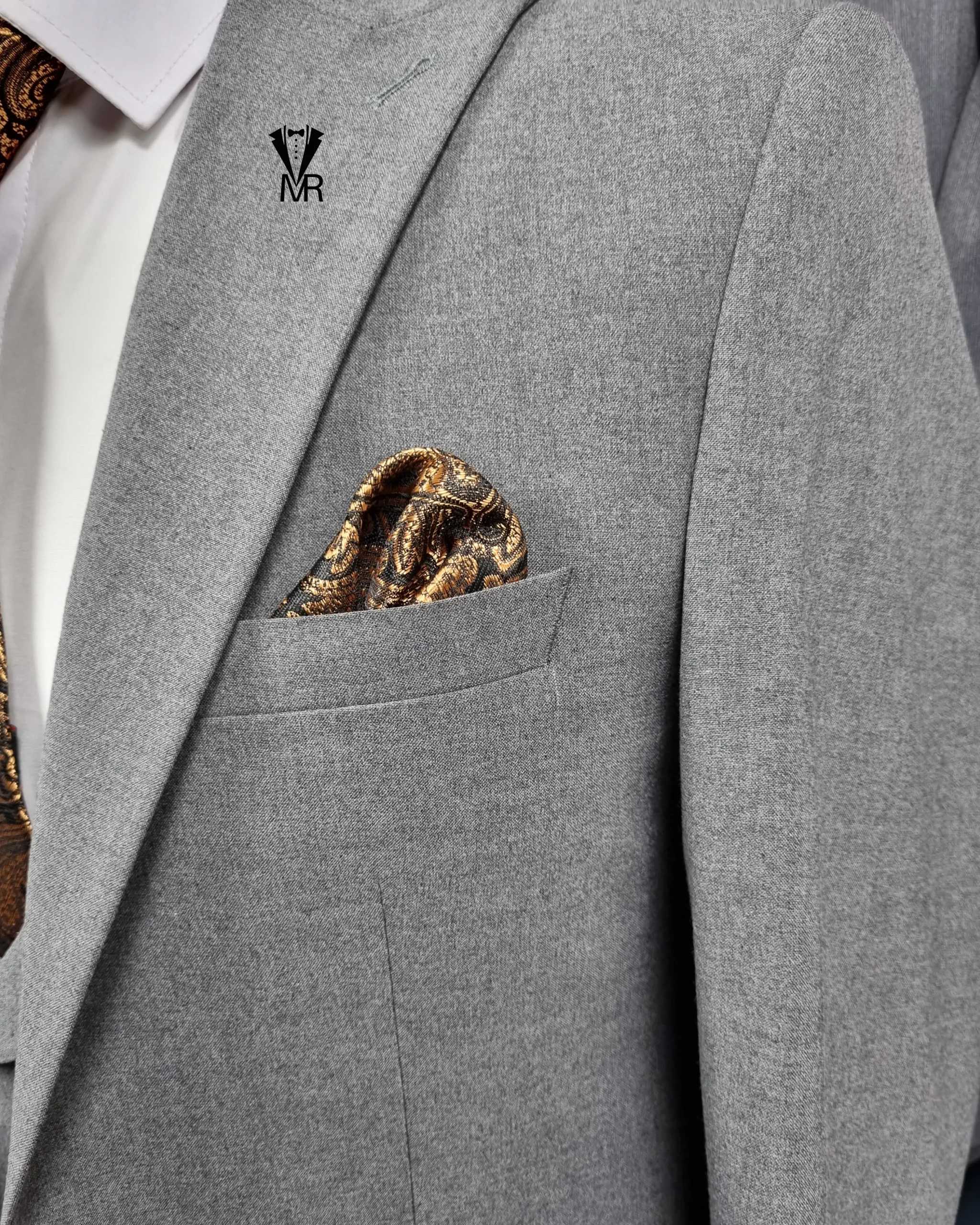 اکسسوری: دستمال جیب سفید یا نقرهای برای ایجاد کنتراست جذاب