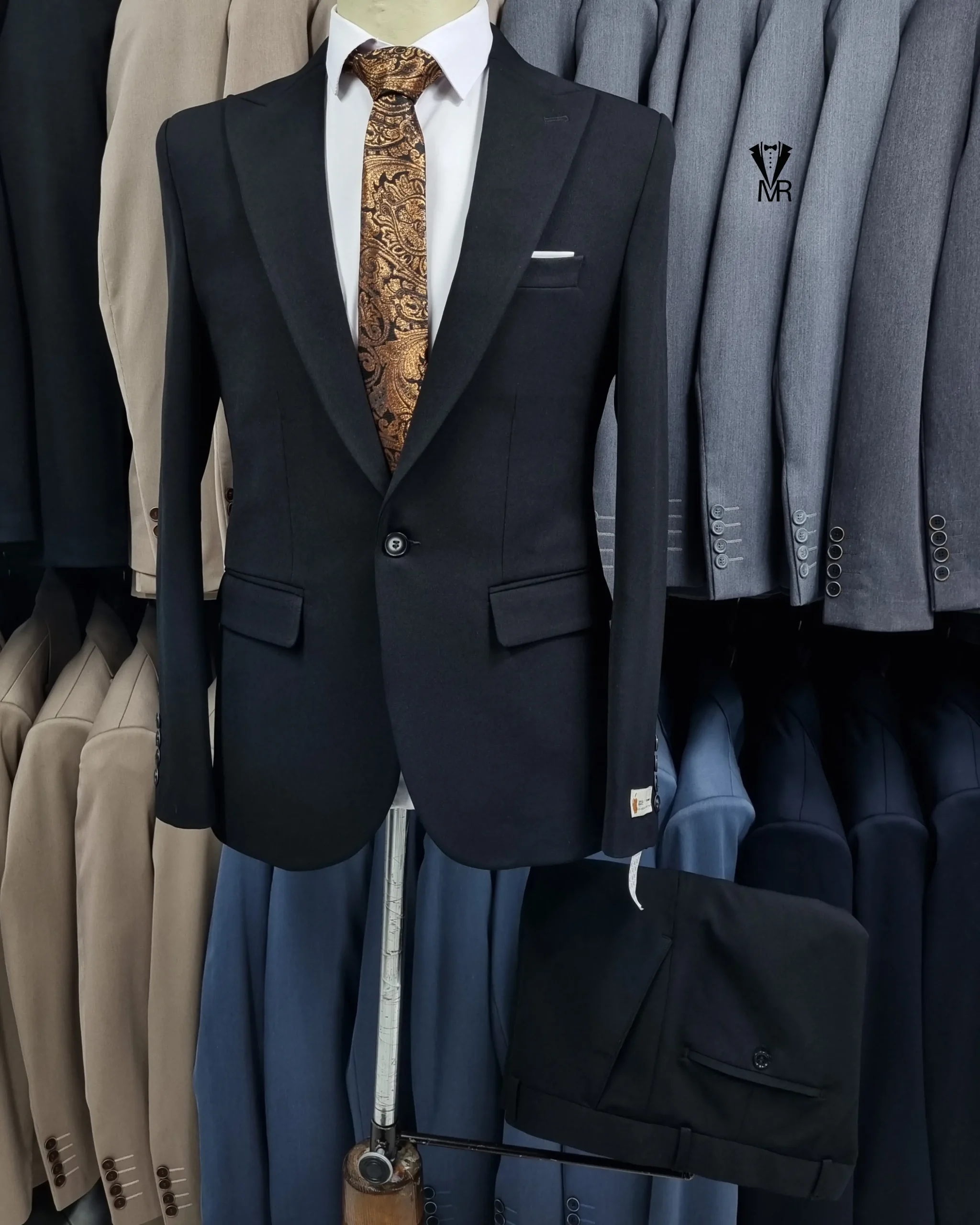 رنگ مشکی همیشه و در هر استایلی جذابیت خاصی دارد و بهراحتی با انواع پیراهنها و کفشها ست میشود. این کت و شلوار با پیراهن سفید، طوسی روشن، مشکی، سرمهای یا حتی تیشرتهای ساده ترکیب فوقالعادهای ایجاد میکند.